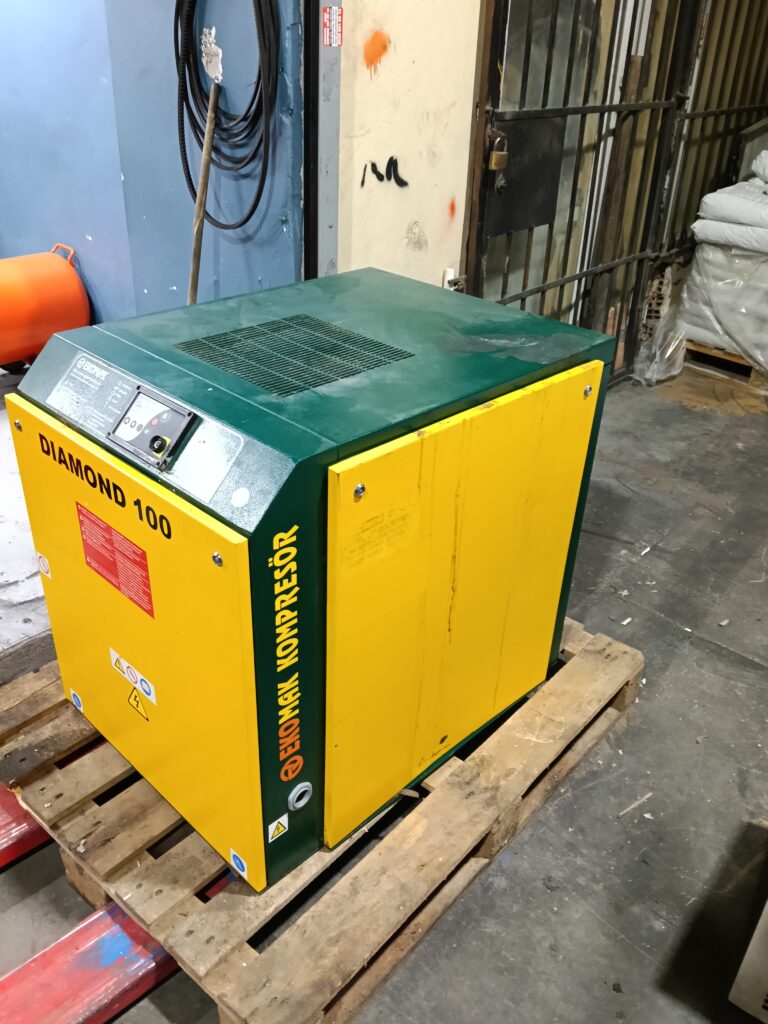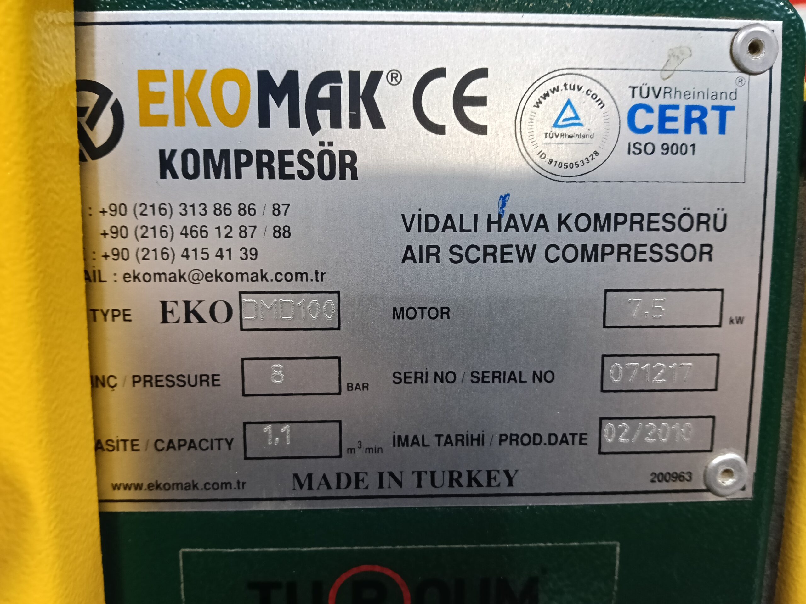 Ekomak DMD 100 model 7,5 Kw gücündedir, 8 Bar çalışma basıncında 1,2 m3 / Dakika hava verimi vardır.